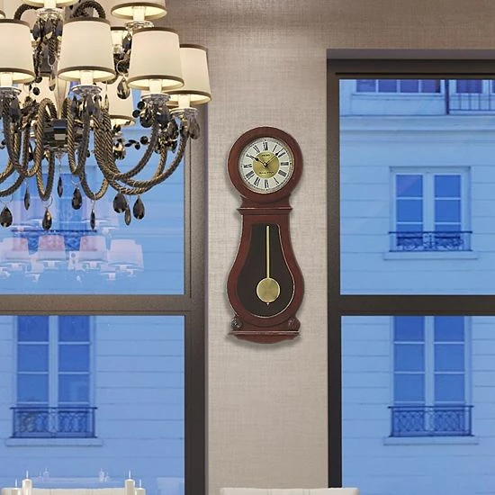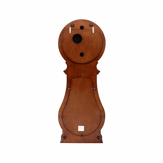 - Bell shaped wooden case & features a metal pendulum