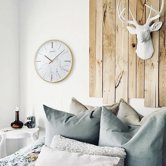 This Seiko Faux Marble Carrara Wall Clock adds a boost of chic style to your home.