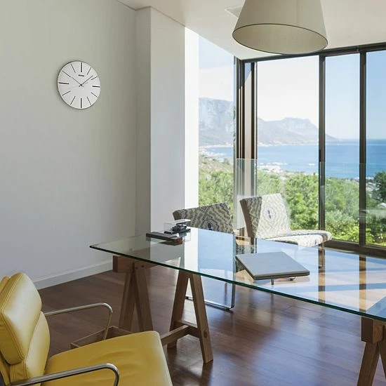 - Silver color trim case and easy to read white and black dial with quiet sweep second hand. Curved glass cover.