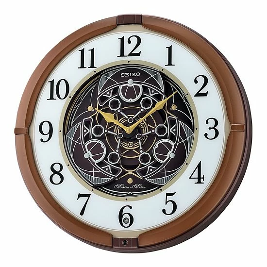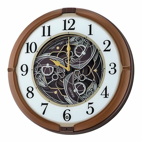- Rotating center opens and closes when melodies are played. On the hour, the clock plays one of 18 melodies with motion. Three sets of melodies are available for selection on the control panel.