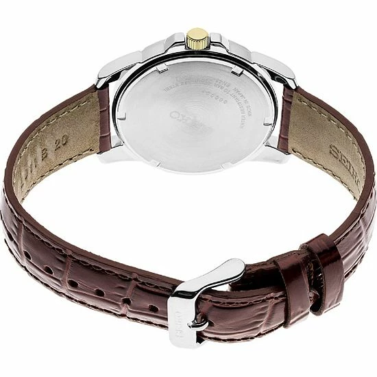 Dress up any casual or business attire with this sophisticated men’s watch from Seiko’s Essentials collection.