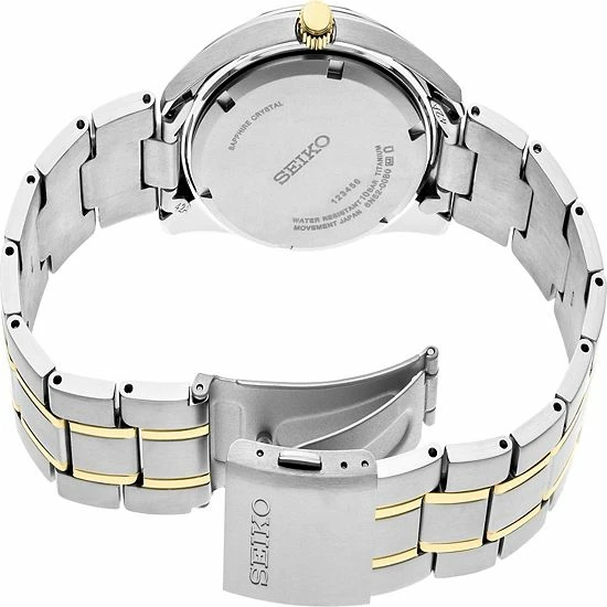 Dress up any casual or business attire with this sophisticated women’s watch from Seiko’s Essential collection.