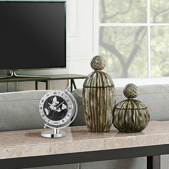 Showcase your sophisticated side with this Seiko Silver Finish Globe Clock Table Decor in your home.